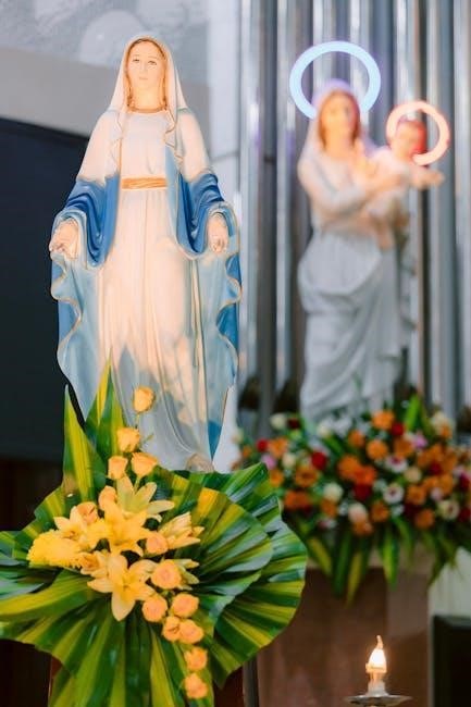Divine Mercy, rooted in Catholic tradition, reveals God’s love and forgiveness. The novena PDF highlights mercy’s connection to justice, offering solace and strength through faith.